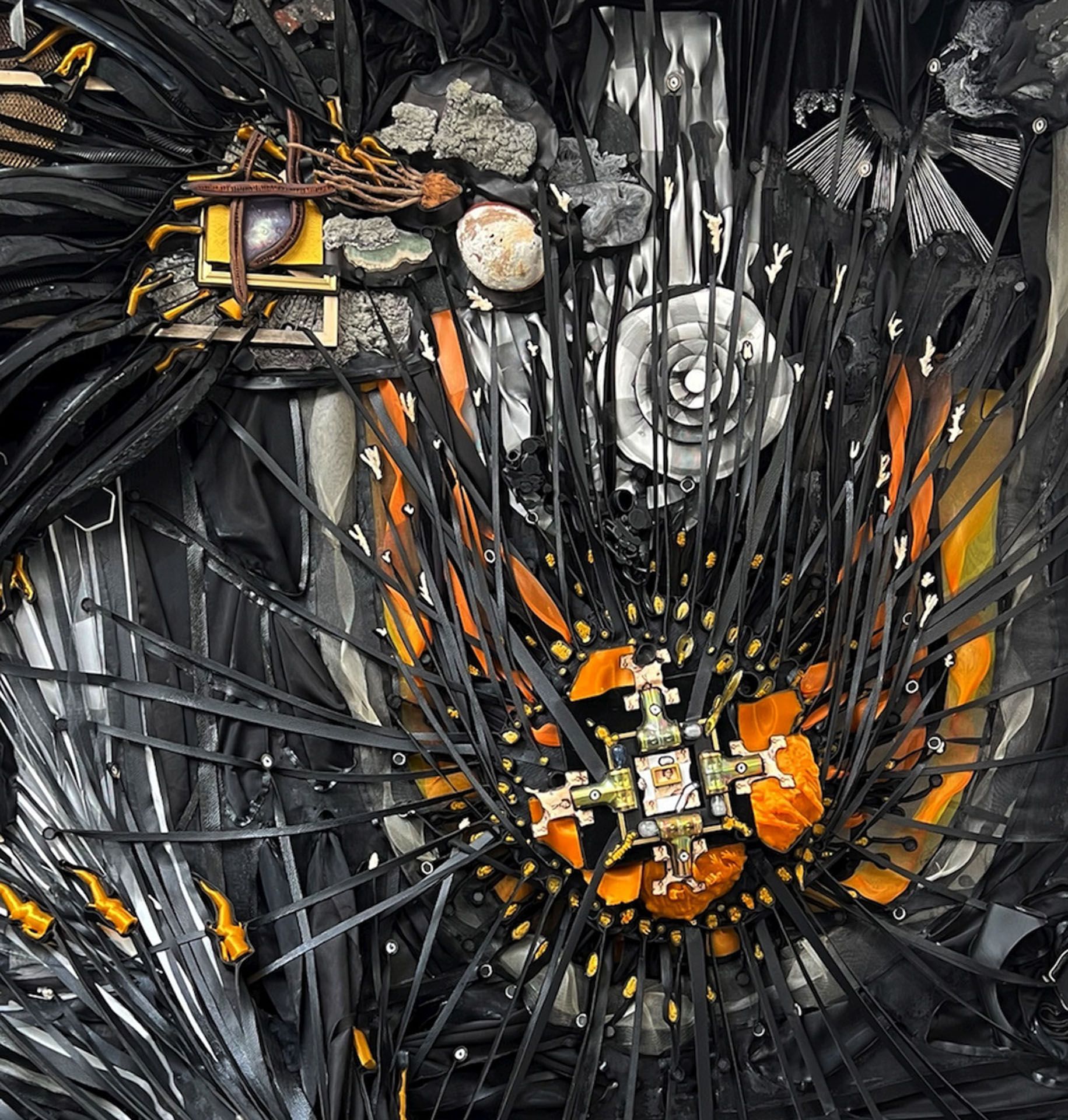 Embedded within these material fields are figures whose lives and legacies resist historical erasure: Dred Scott, George Washington Carver, Octavia Butler, Augusta Savage, Edmonia Lewis, Breonna Taylor, and the artist’s African American great-great-grandmother, whose lineage traces back to the late nineteenth century. Their images function as gravitational forces—anchoring the cosmos to lived experience and asserting presence within narratives that have repeatedly attempted to exclude, flatten, or silence them. Through framing, embedding, and suspension, Piller repositions the “lost” as central rather than peripheral.