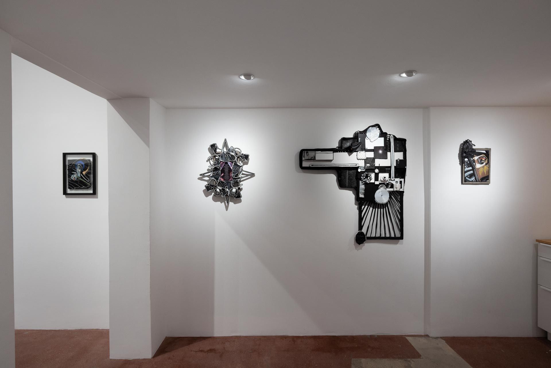 The works assemble constellations of organic, industrial, and digital matter. Celestial images sourced from a 1982 astronomy book—the year of the artist’s birth—serve as temporal anchors, linking personal origin to deep cosmic time. Around these images, Piller gathers materials charged with histories of labor, consumption, and decay: abalone shell, coral and sea sponge, strata-like layers of salvaged factory-floor paint, and recycled 3D-printed components created in collaboration with the artist duo Bec/Col. These hybrid materials form an archaeology of the present—where natural systems and human technologies collide, fracture, and transform.