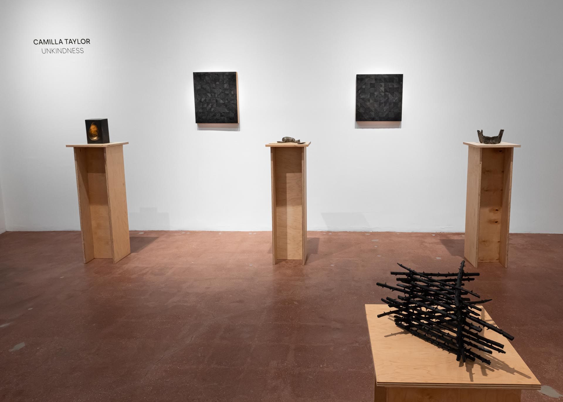 Camilla Taylor is recognized for their monochromatic and intensely introspective works on paper and sculpture, which utilize figurative and architectural forms. Taylor’s artworks reflect the viewer’s internal lives as well as collective issues we experience as a society.