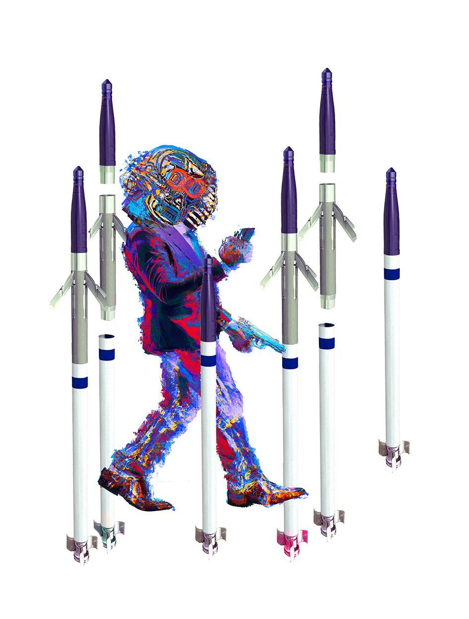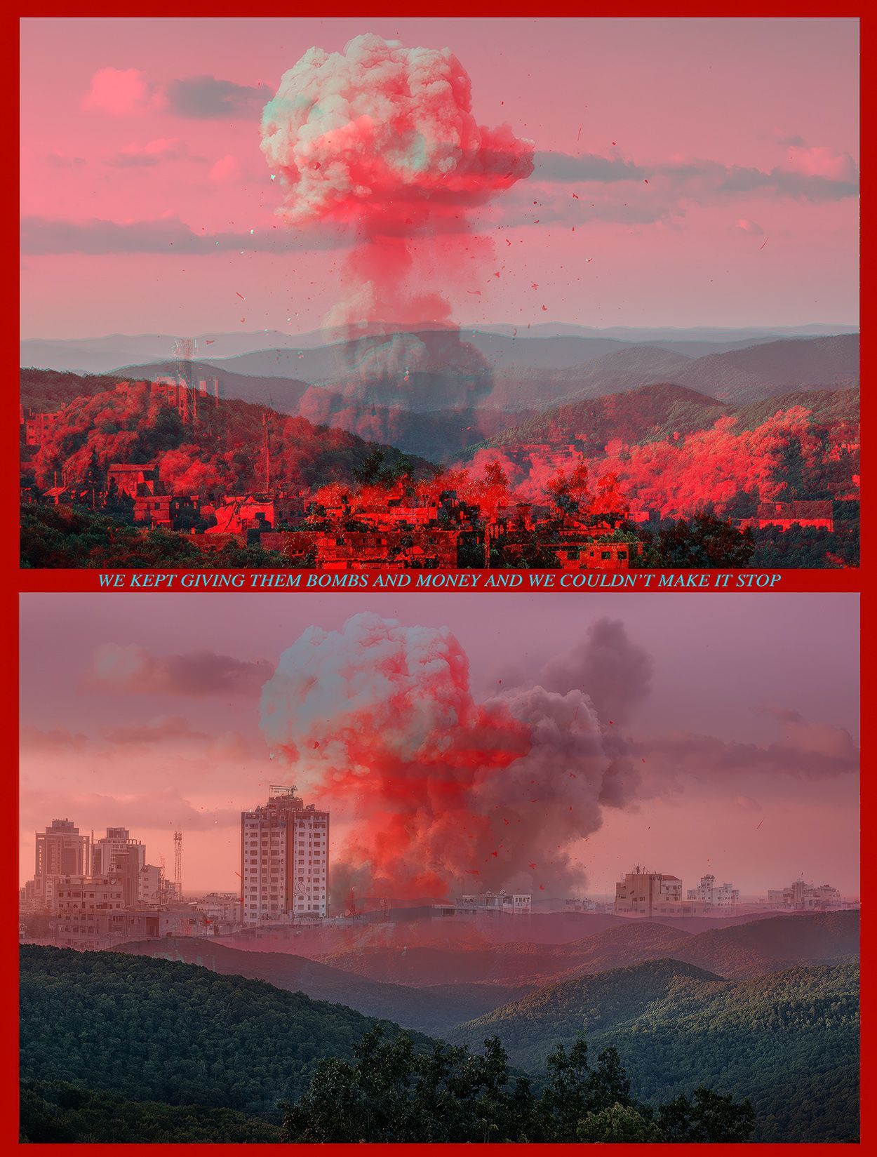 Lane Barden. Bombs and Money. 2026. Archival pigment on Hahnemühle Photo Rag Satin. 28 x 20".