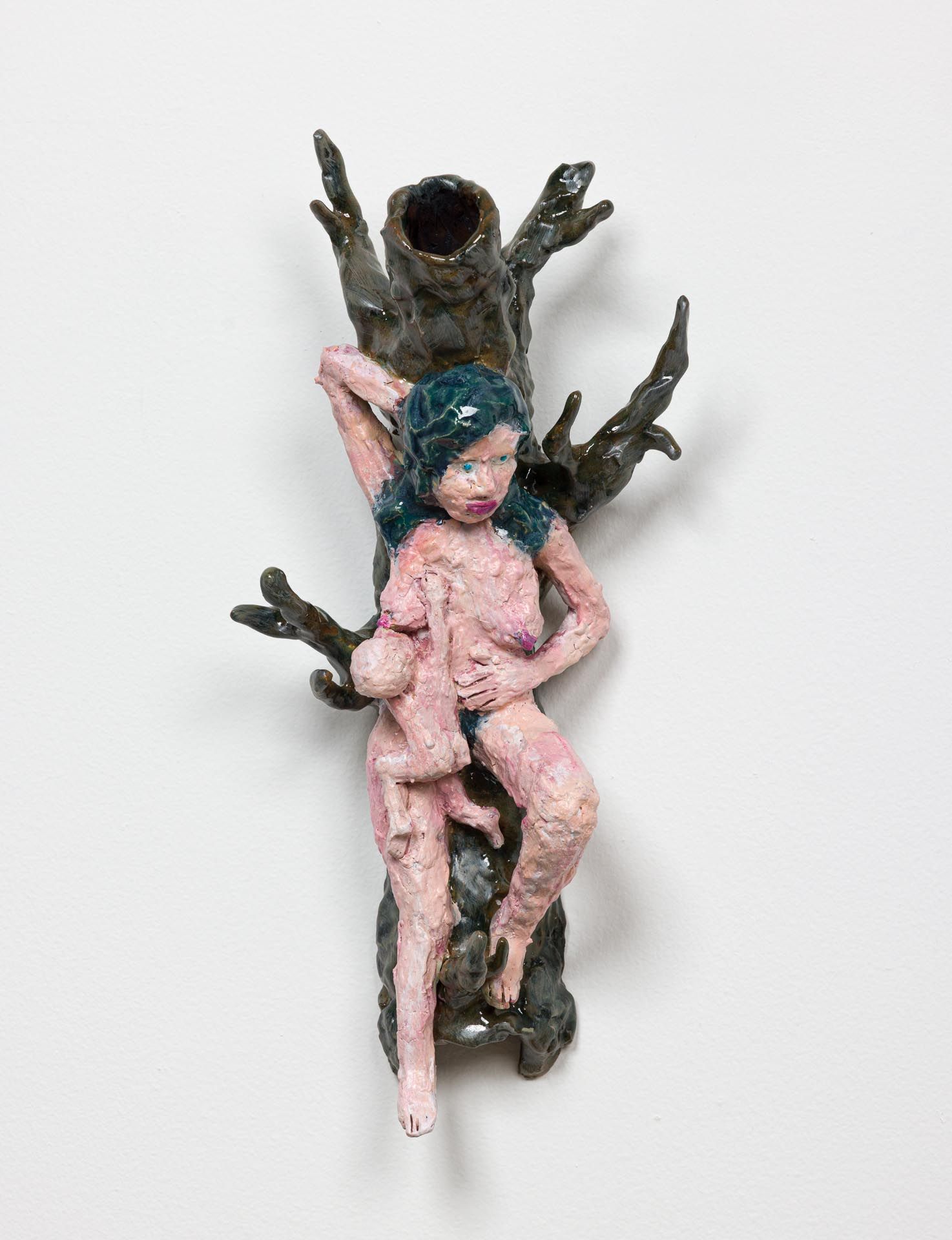 Stoneware, glaze, epoxy putty, beads, acrylic paint